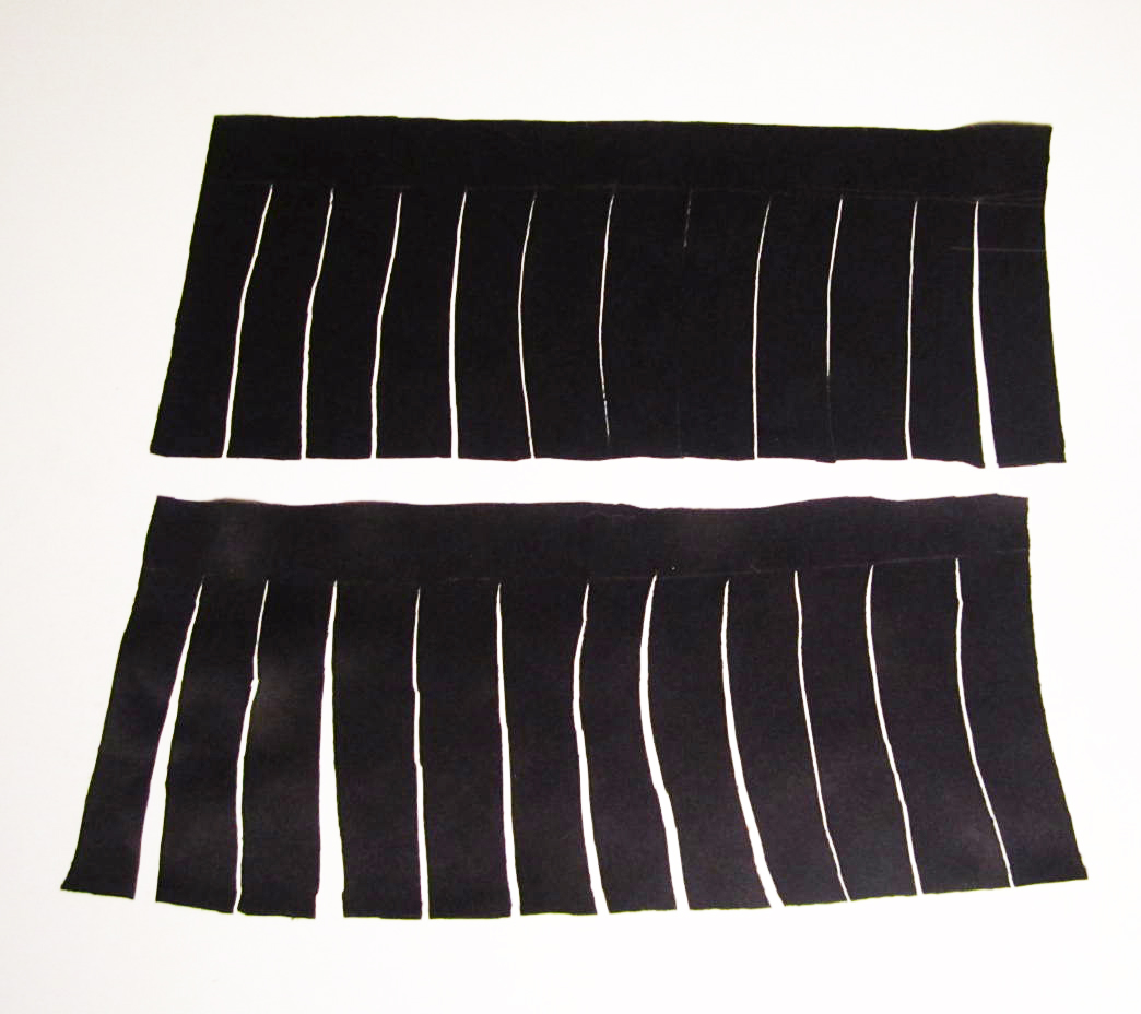 I drew a line that was ½ an inch wide across the top of the material. The line was the point I cut all the fringes up to.